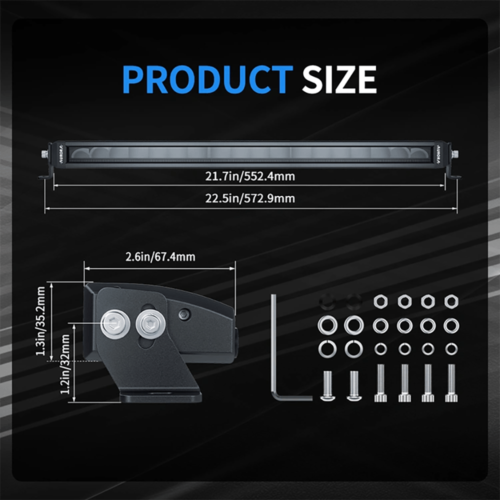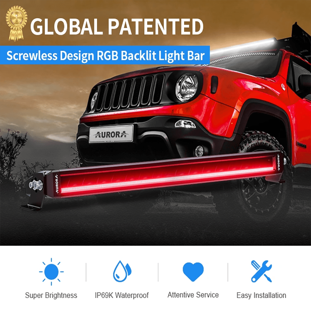 AURORA ხრახნიანი IP69K 20-ინჩიანი DRL RGB LED განათების ბარი
