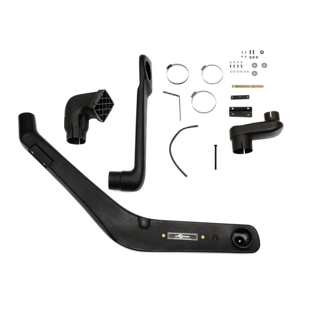 TOYOTA Land Cruiser 7X სერიისთვის (როგორიცაა LC70, LC75, LC76, LC77, LC78, LC79) განკუთვნილი შნორკელის მონტაჟის კომპლექტი უზრუნველყოფს თქვენი ავტომობილის ძრავის ჰაერის მიმღები სისტემის დაცვას ექსტრემალურ საგზაო და გარემო პირობებში. სისტემა ამაღლებს ჰაერის ამღებ წერტილს ავტომობილის სახურავის დონეზე, რაც ეფექტურად უშლის ხელს წყლის, ტალახისა და მტვრის შეღწევას ძრავში ღრმა წყლის გადალახვისას ან მტვრიან გარემოში მოძრაობისას.